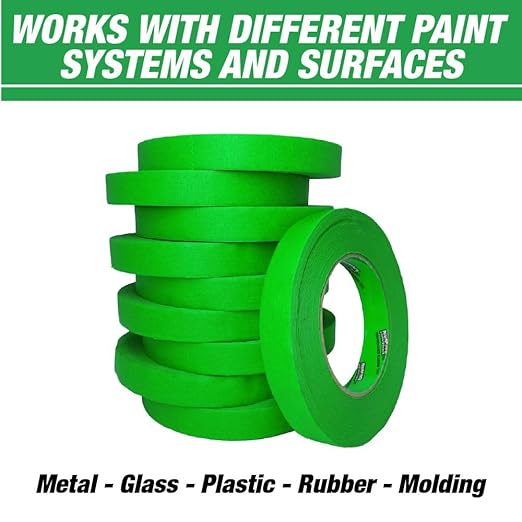 LAUCO DINOGREN High Performance Masking Tape for Car Paint, Heat & Water Resistant, Multi-Purpose Green (0.75 in (12 Rolls))