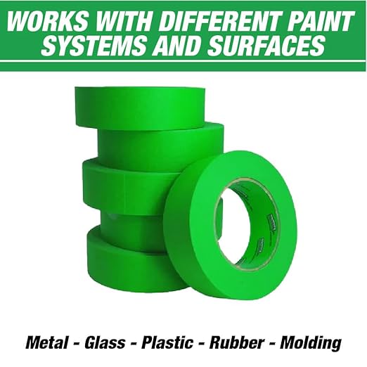 LAUCO DINOGREN High Performance Masking Tape for Car Paint, Heat & Water Resistant, Multi-Purpose Green (1.5 in (6 Rolls))