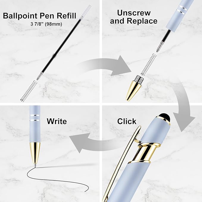 - Quality Material: The sturdy metal ballpoint pens are made of lightweight aluminum with rubberized coating, soft touch grip is easy to use and suitable for long term writing.