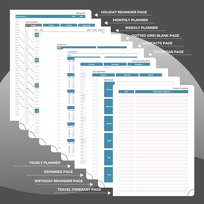 - Thoughtful Design: The monthly tabs on the side of the agendas planner can easy locate the current date; the tear off design and bookmark rope make it easy to flip through the medium planner. The last page of the 2026 college planner has an expanded inner pocket that has a small space for storage of cards