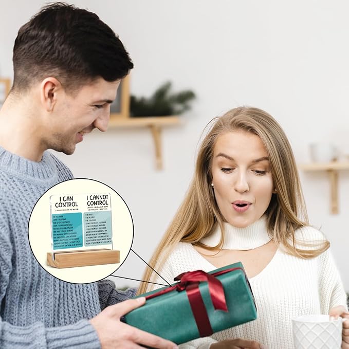 Mental Health Things I Can Control Decor Sign, Motivational Office Acrylic Sign With Wooden Stand, Thank You Gifts for Woman Coworker Nurse Friends Decorative Desk Accessories Table Shelf Decor-2