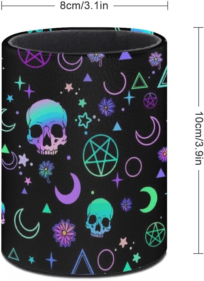 Magic Skull Pen Holder Pencil Organizer Cute Pencil Cup Desk Decor Makeup Brush Holder PU Multifunctional Office Suppliesfor Home Classroom School