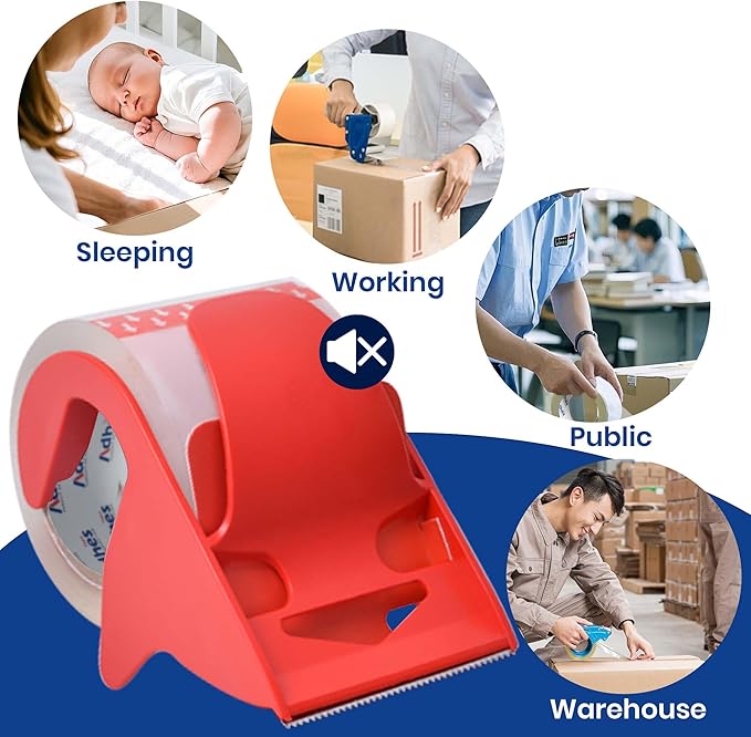 ADHES No Noise Shipping Packing Tape, 48mm x 20m, 12 Tape Rolls with Dispensers, Heavy Duty Packing Tape for Moving Boxes-Moving Tape Strong Adhesive Packaging