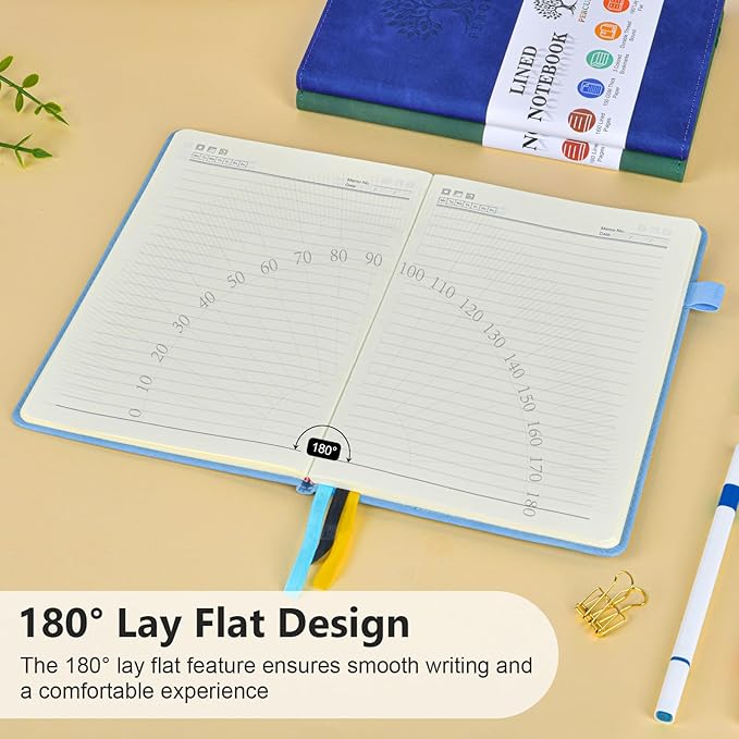 - 【180° LAY FLAT DESIGN & PREMIUM LINED PAPER】: Lay the notebook completely flat for easy writing in any setting—whether at your desk, in a café, or on the go. The 160 pages of 100 GSM lined paper (7mm spacing) offer a smooth writing experience, ideal for journals, work notes, school assignments, or Bible study notes, with minimal ink bleeding or feathering.