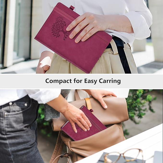 - 【FUNCTIONAL DESIGN FOR ORGANIZATION】: Stay organized effortlessly with 3 colored silk ribbon bookmarks to track multiple sections like bible study, work projects, or personal entries. Secure your journal with 2 elastic bands and utilize the integrated elastic pen loop to always have your writing tool ready. A truly functional writing journal.
