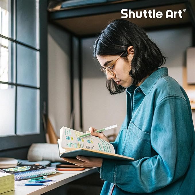 Shuttle Art Colored Pens, 24 Blue & Green Tone Colors Cute Journal Pens 0.6mm Fine Point Colored Gel Pens for Black Paper Adult Coloring Writing Drawing Journaling Note Taking School Office Home