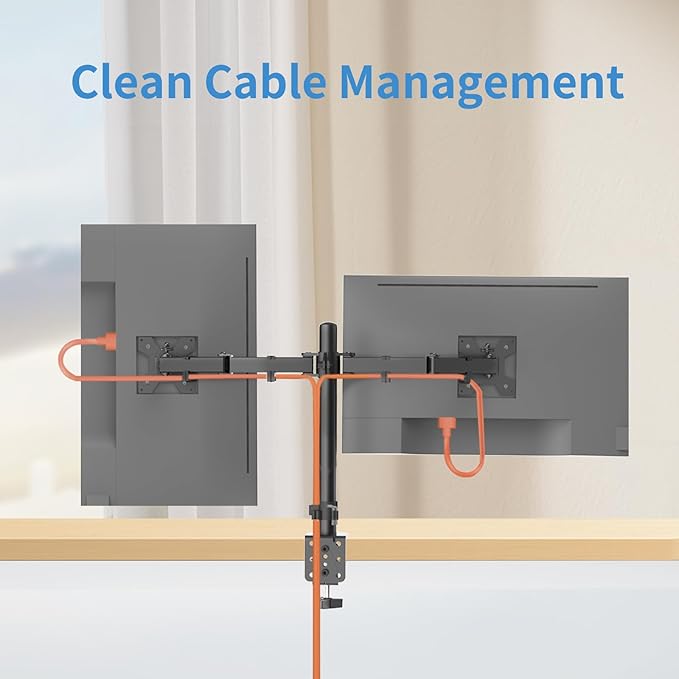 H&C(hcck&Cllassp) Dual Monitor Mount, Monitor Arm with Swivel, Tilt, Rotation, Height Adjustable, VESA Mount for 17-27” Monitors up to 17.6lbs, Desk Mount with C-Clamp, Black