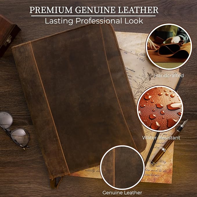 - Spacious Yet Portable – Leather portfolio for men sized 10.8” x 14.4”, designed to fit standard 8.5” x 11” papers. This portfolio notebook keeps resumes, notes, and contracts neatly organized without bulk.