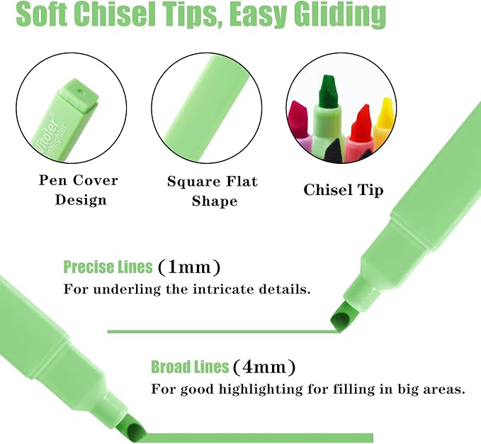 - Our aesthetic highlighters are comfortable and highlighters bulk easy to hold without a sore hand & don't roll around while using. The versatile chisel tip efficiently produces wide and narrow lines.