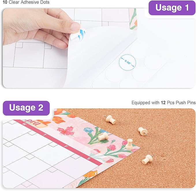 - ✨ 36.6" x 48" Large Calendar: Calendar planner that is easy to hang using transparent adhesive stickers and push pins, and is easy to clean. Monthly calendar keeps you organized and on top of things, even during the busiest and most hectic times of your life.