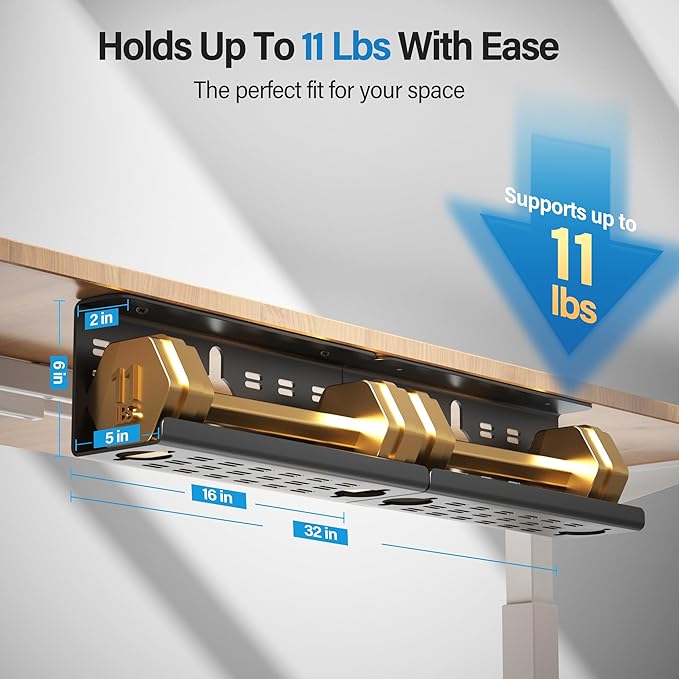 - 【Spacious & Expandable】 This 16"×5"×6" (extends to 32 inch) cable management under desk tray comfortably fits MacBook chargers, multiple adapters, and cables while maintaining easy access.