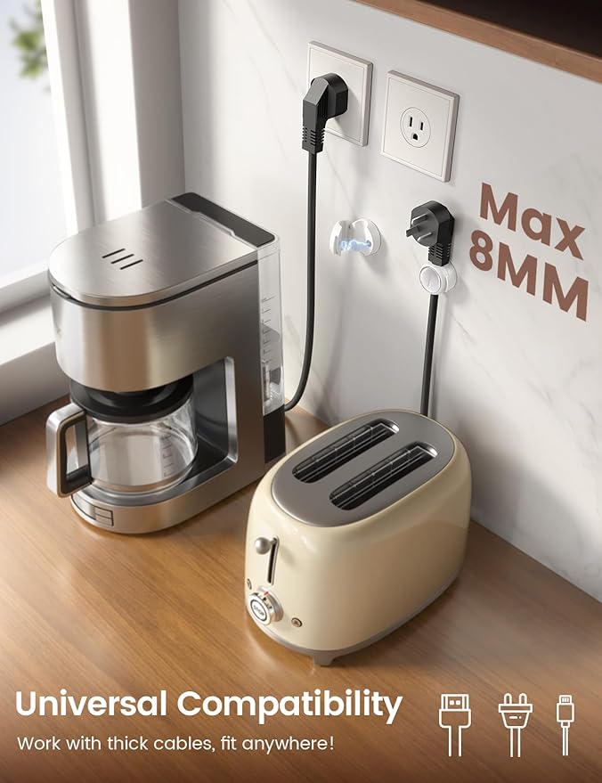 - 【Perfect Fit for Most Cables (8mm Slot)】With a diamete of 0.32 inches (8.0mm), these cable management clips can hold most cables, such as phone charging cables, USB cords, HDMI thick cables, computer power cords, etc. Designed to let you pull cables out smoothly whenever you need them – no snagging.