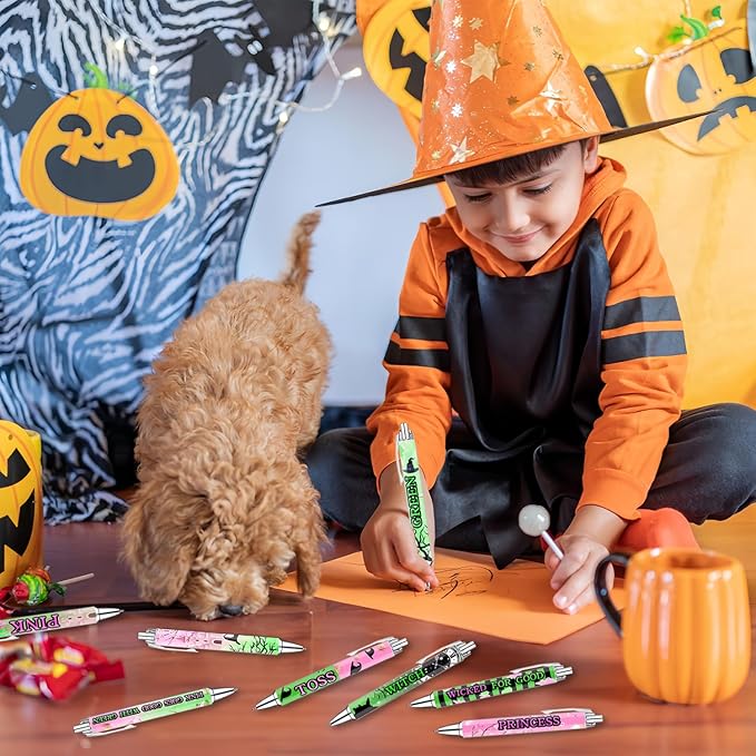 Halloween Princess and Witch Pens Set – Magical Fantasy-Themed Ballpoint Pens for Girls, Students, Stationery Lovers – Smooth Writing Pens for School, Journaling, Gifts – Pink Green Pens, 8 Pack
