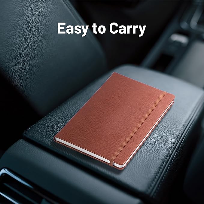 - Portable Notebook:A5 notebook journal Measuring 5.5 x 8.5 inches, it’s easy to carry around. The 180° lay flat notebook design makes writing and reading more convenient, while the elastic closure band keeps the notebook securely closed, protecting your content