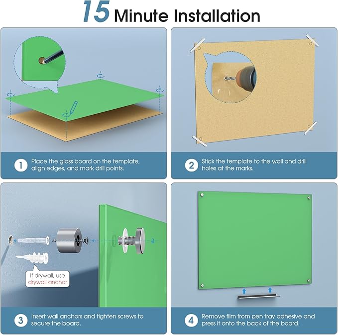 - 15-Minute Fast Installation with Complete Professional Accessories: Comes with an installation template, accessory tray, premium magnetic glass board eraser; easy setup within 15 minutes for horizontal or vertical mounting