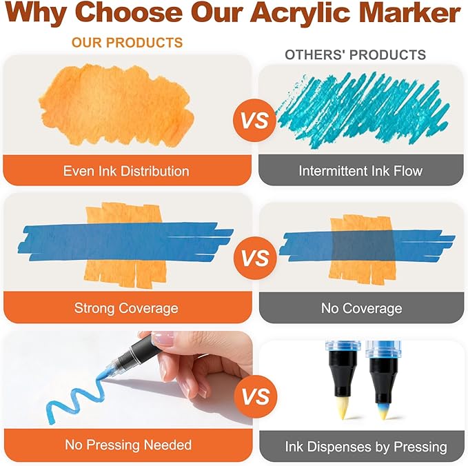 - The Perfect Creative Gift: Inspire anyone's inner artist. This comprehensive acrylic paint markers set is a fantastic gift for crafters, students, and professionals. It's a hit as markers for kids' school projects and sophisticated coloring markers for adults, making it the ideal gift for any occasion.