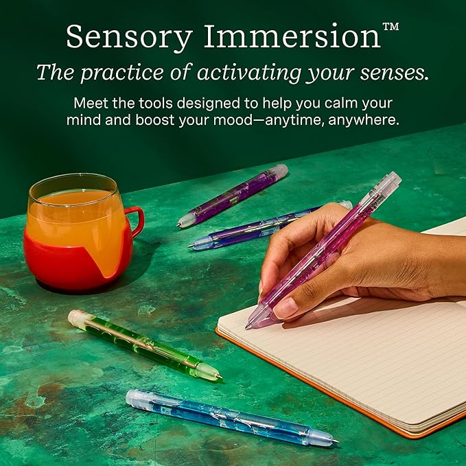 - Scented Ink: Each pen has a unique scent, infused with our premium Essential Oil Blends. Hints of freesia, jasmine, fir needle, peppermint, clove, vanilla, coconut, sea salt, apple, and cedarwood create an extraordinary aroma experience.