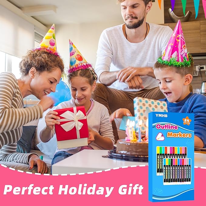 - Great Gift Idea: Outline markers pen is the best gift for kids. This outline markers is an ideal gift for adults and kids, Easter Basket Essentials, Easter Basket Stuffers for Teens.This outline markers is Children’s Day, Easter Day, Birthday Party, Christmas, Halloween, Thanksgiving Day, New Year and Back to School's most suitable painting and gifts.