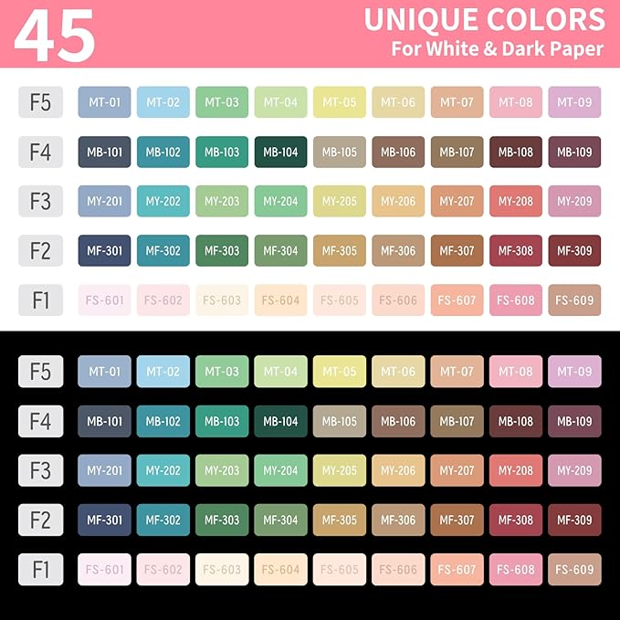 - 【Gift Box-45PCS Gel Pens 】You'll receive a beautiful gift box for your loved ones. Our gift box is a storage box with handles, which includes 45 colored pens. It features 5 stackable layers, and each layer consists of 9 pens, which can meet your color needs for drawing on white and dark papers.