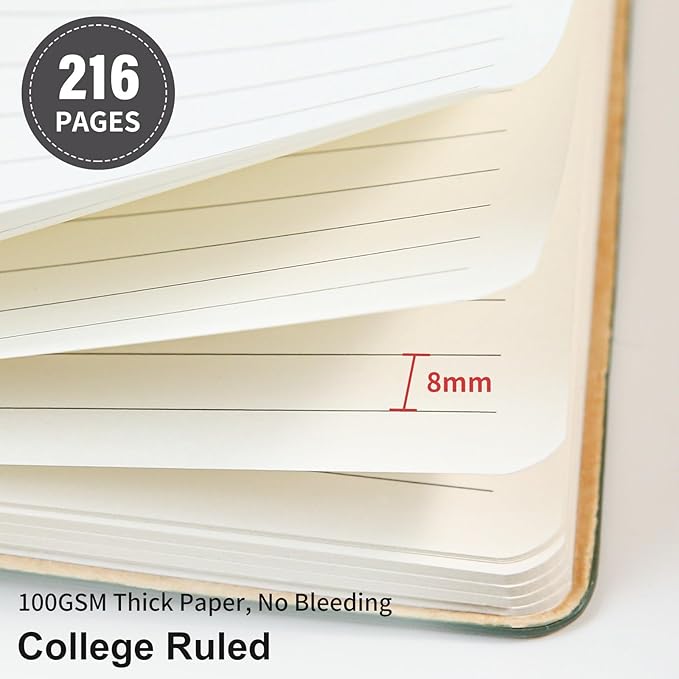 - Durable & Stylish PU Leather Journal: Crafted with a premium PU leather cover, the TSFPapier Lined Journal Notebook is both water-resistant and built to last. The durable PU leather cover adds a touch of elegance, making it perfect for students, professionals, and journaling enthusiasts alike. The 8mm college ruled lines provide ample space for neat and organized writing, making it ideal for work, school, or creative projects.