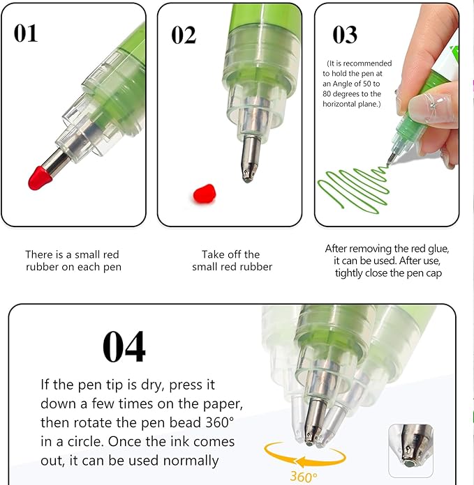 • 4. Easy to Use & Wide Compatibility - No need for complicated preparation, these acrylic gel paint markers are ready to use right out of the box. The ink dries quickly, preventing smudges and ensuring a clean finish. They work perfectly on most surfaces such as rocks, glass, wood, paper, fabric and ceramics, making them a must-have for all your creative endeavors.