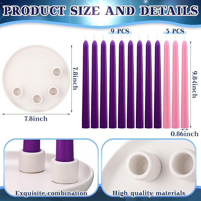 - Package Quantity: each package includes one wooden tray Christmas Advent candle holder and 12 Advent paraffin candles ( 9 purple and 3 pink), providing both style and substance to your decoration; This quantity ensures that you'll have enough candles to last through the Advent season