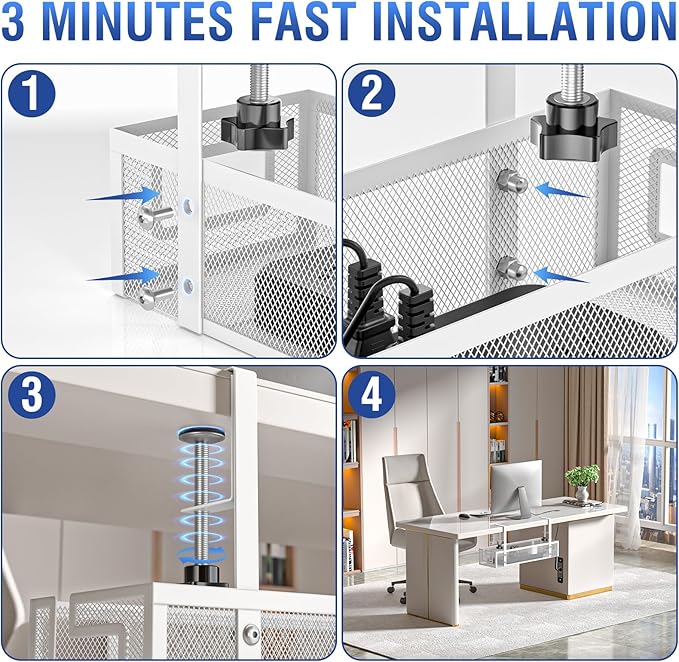 - 【Easy Installation & Desk Protection】 Set up the cable management tray in under 3 minutes with no drilling required. It includes anti-scratch rubber pads to protect your desk surface, unlike other organizers that may damage your furniture.