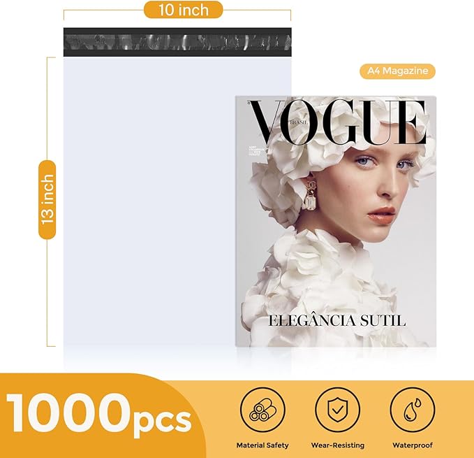Metronic Poly Mailers 10X13 1000 Pack, Strong Adhesive Shipping Envelopes for Clothing, Medium Shipping Bags for Small Businesses, Waterproof Mailers Poly Bags (White, 10x13 1000PC)