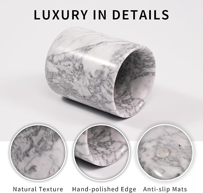 - This marble product is highly versatile. It can be used as a pen holder and also for storing makeup brushes.