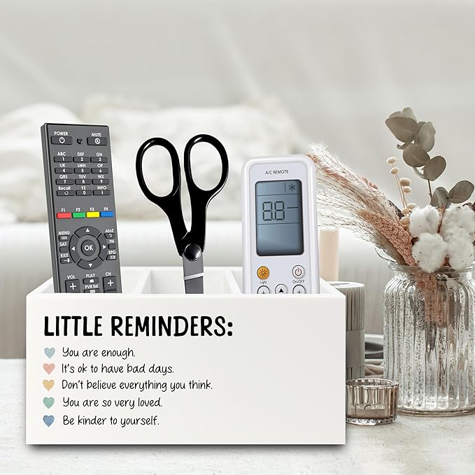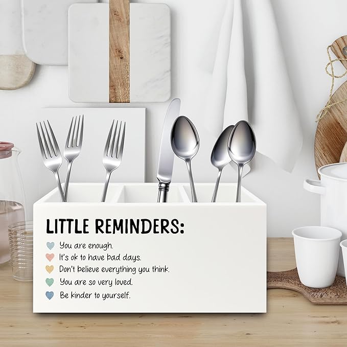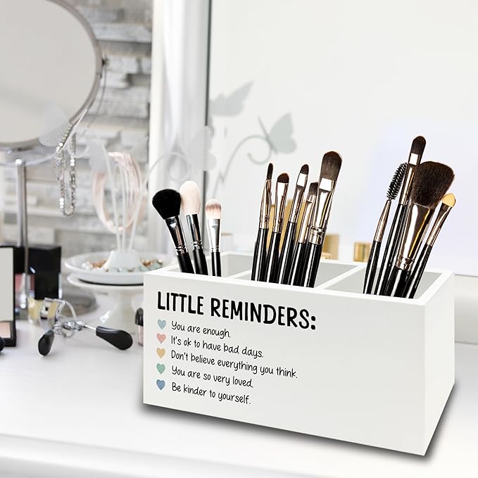 Little Reminders Inspirational Pen Pencil Holder Organizer for Desk, Positive Gifts, Mental Health Motivational Wooden Box Sign for Therapy Counselor Office Classroom Desk Tabletop Decorations