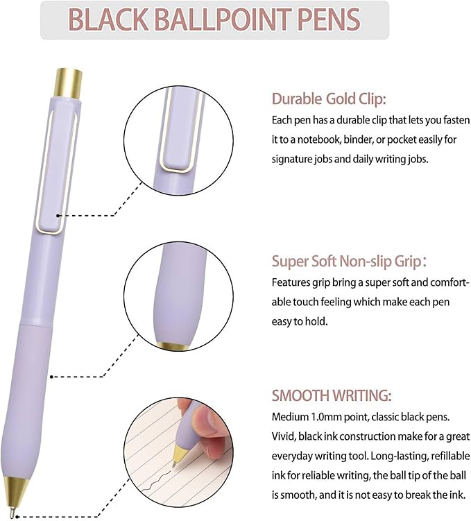 - Super Soft Non-slip Grip: Features grip bring a super soft and comfortable touch feeling which make each ballpoint pen easy to hold