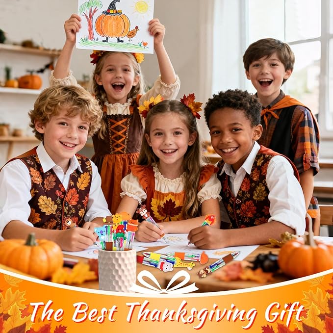 CZWZ 30Pcs Mini Multicolor Pens in One 4-in-1 Cute Pens Bulk for Kids, Ballpoint Pen for Birthdays and Children's Parties, Fun Gifts Assorted Ink Kawaii Pen(Thanksgiving)