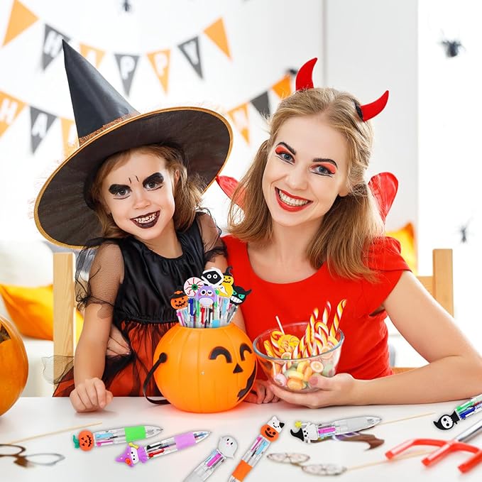CZWZ 32Pcs Mini Multicolor Pens in One 4-in-1 Cute Pens Bulk for Kids, Ballpoint Pen for Birthdays and Children's Parties, Fun Gifts Assorted Ink Kawaii Pen(Halloween)