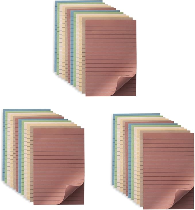 (36 Pack) Lined Sticky Notes 4x6 in Ruled Stickies Super Sticking Power Memo Pads Vintage Colors