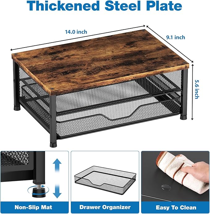 OPNICE Computer Monitor Stand Riser, Desk Organizers and Accessories with Drawer, Laptop Stand, Office Desk Accessories & Workspace Desktop Organizers Storage for Office Supplies(Brown)
