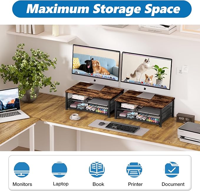 - 【Modern Aesthetic】With its simple and stylish design, this monitor stand not only organizes your workspace but also enhances the overall style. It blends perfectly with any office decor, adding elegance while enhancing functionality