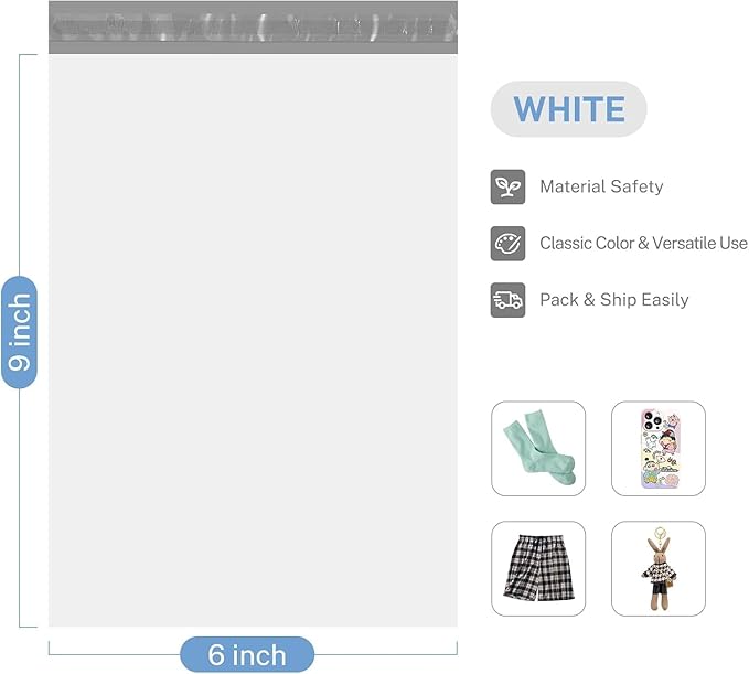 - White Poly Mailers- Our versatile poly mailers serve as a dependable choice for your e-commerce venture or personal mailing needs, ensuring secure and efficient shipment every time. These mailing envelopes measure 6x9 inches, 1200pack mailers which are lightweight.