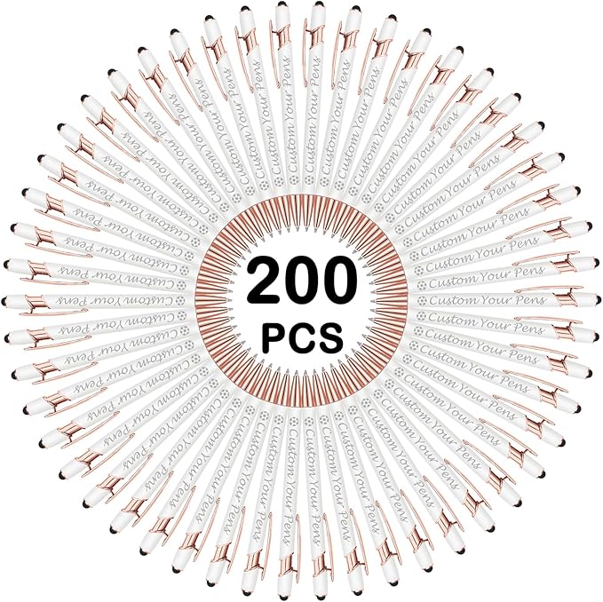 Amlion Personalized Custom Pens with Name Engraved Logo Text,200 Customized Writing Stylus Pen Promotional Item Gift for Men Women Office Business Wedding-White