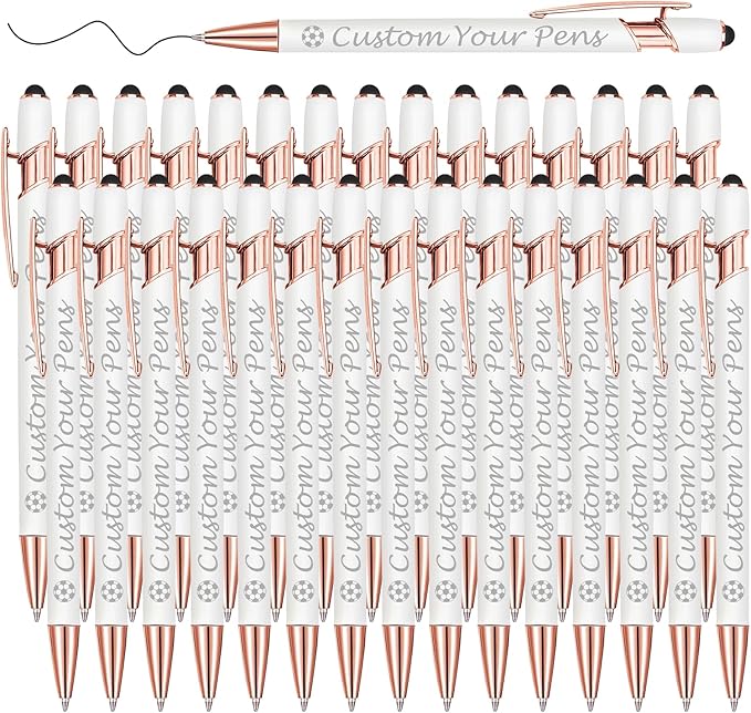 Amlion Personalized Custom Pens with Name Engraved Logo Text,30 Customized Writing Stylus Pen Promotional Item Gift for Men Women Office Business Wedding-White