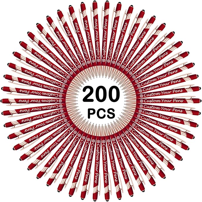 Amlion Personalized Custom Pens with Name Engraved Logo Text,200 Customized Writing Stylus Pen Promotional Item Gift for Men Women Office Business Wedding-Deep Red