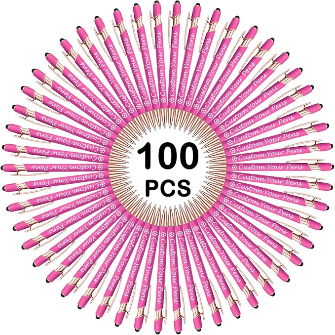 Amlion Personalized Custom Pens with Name Engraved Logo Text,100 Customized Writing Stylus Pen Promotional Item Gift for Men Women Office Business Wedding-Pink