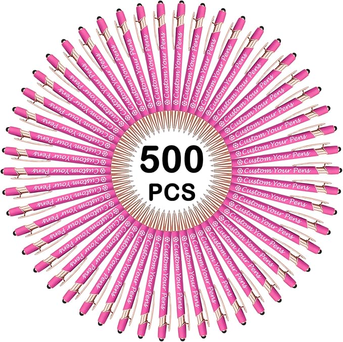 Amlion Personalized Custom Pens with Name Engraved Logo Text,500 Customized Writing Stylus Pen Promotional Item Gift for Men Women Office Business Wedding-Pink