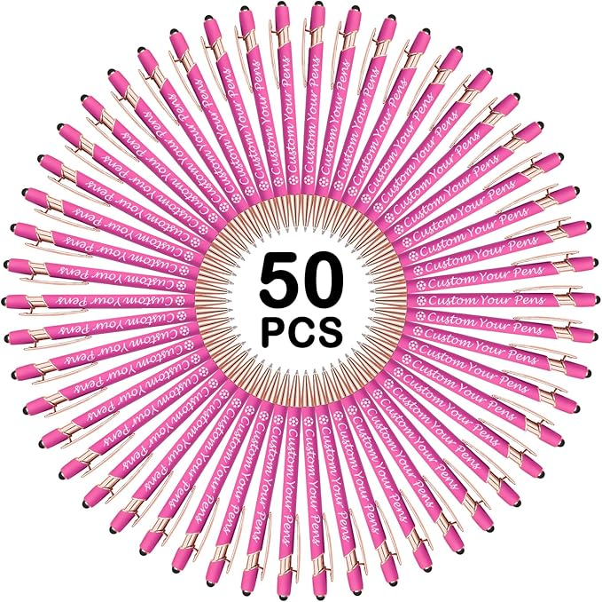 Amlion Personalized Custom Pens with Name Engraved Logo Text,50 Customized Writing Stylus Pen Promotional Item Gift for Men Women Office Business Wedding-Pink
