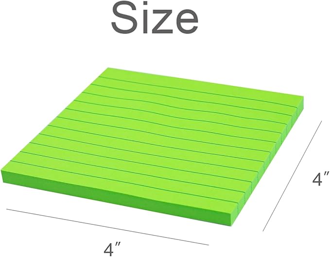 (36 Pads) Lined Sticky Notes 4x4 in, 6 Bright Colors Self-Stick Note Pads, Strong Adhesive, 47 Sheets/Pad
