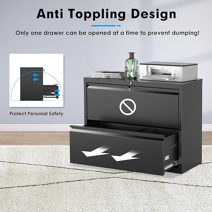 - ♚【Durable Metal & 220LBS Load Bearing】Pataku black file cabinet with thick cold-rolled high-strength solid all-steel materials and powder coating structure, make the cabinet away from rust and damage, more durable than wood file cabinet. 2 drawer file cabinet with lock can carry up to 220 LBS, strong enough to put your printers scanners.