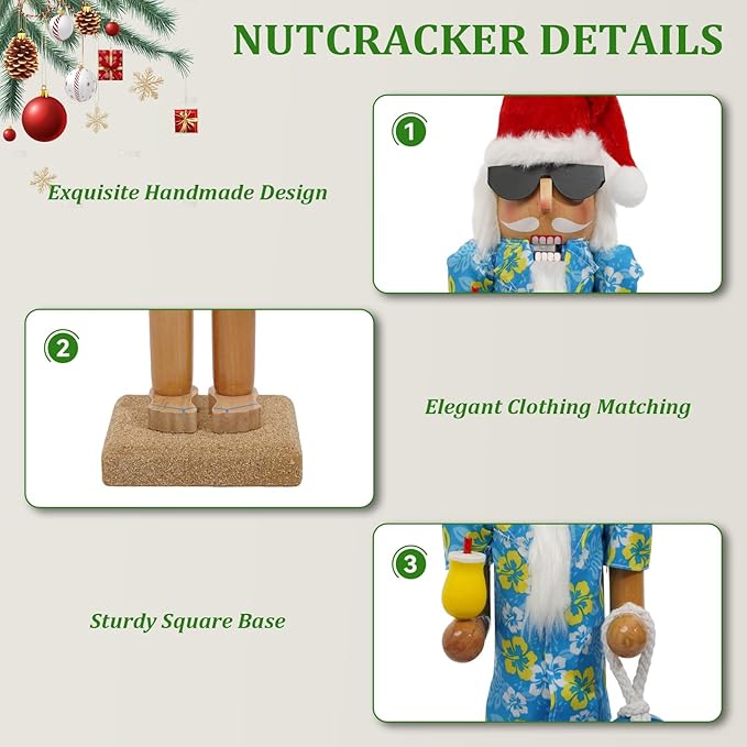 Nutcracker Christmas Decor, 14" Wooden Nutcracker Soldier Christmas Decoration Home Mantle Table Fireplace Christmas Ornaments for Festival Party(14" Hawaiian Beach Nutcracker)