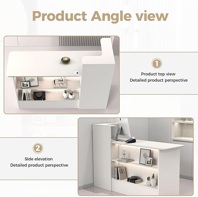 - ๐๐๐ฎ๐น-๐๐ฒ๐๐ฒ๐น ๐๐ผ๐๐ป๐๐ฒ๐ฟ ๐๐ฒ๐๐ถ๐ด๐ป - The raised front counter provides a comfortable standing height for greeting clients or handling transactions, while the lower desktop offers ample workspace for computers and paperwork