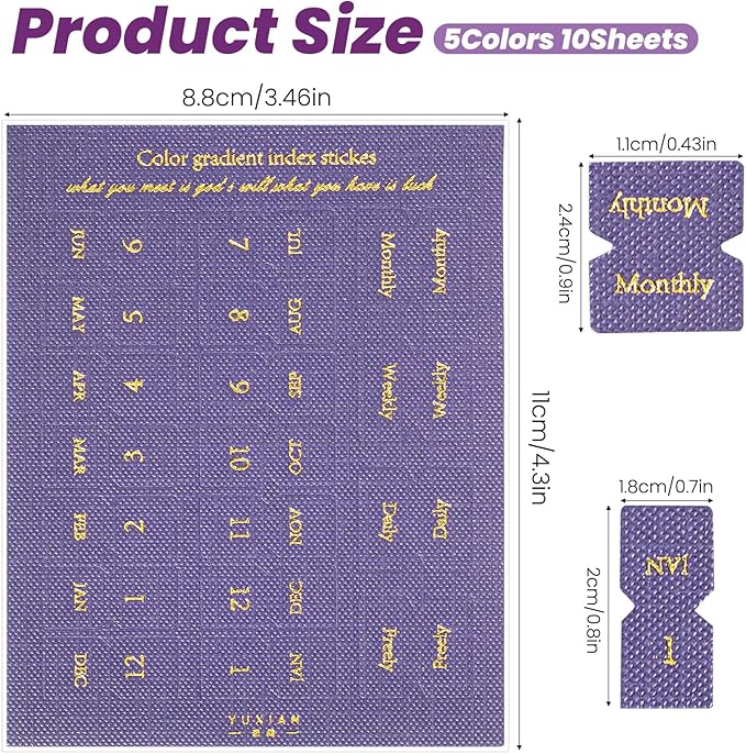 - Exquisite Appearance: Our beautifully designed planner tabs feature a textured surface, vibrant colours and hot stamping, giving them a sophisticated look that is visually appealing and stylish.