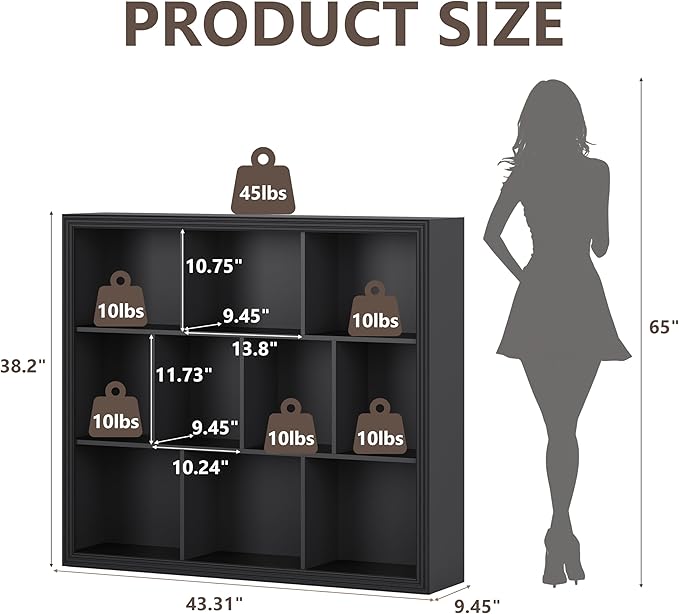 - 【VERSATILE USAGE】This wooden cube storage organizer fits seamlessly in any room in your home or office. Use it to organize books, toys, office supplies, and more. It also doubles as a bookshelf or media stand, with enough space to hold TVs up to 55 inches wide. Overall Dimensions: 43.31" x 9.45" x 38.20"