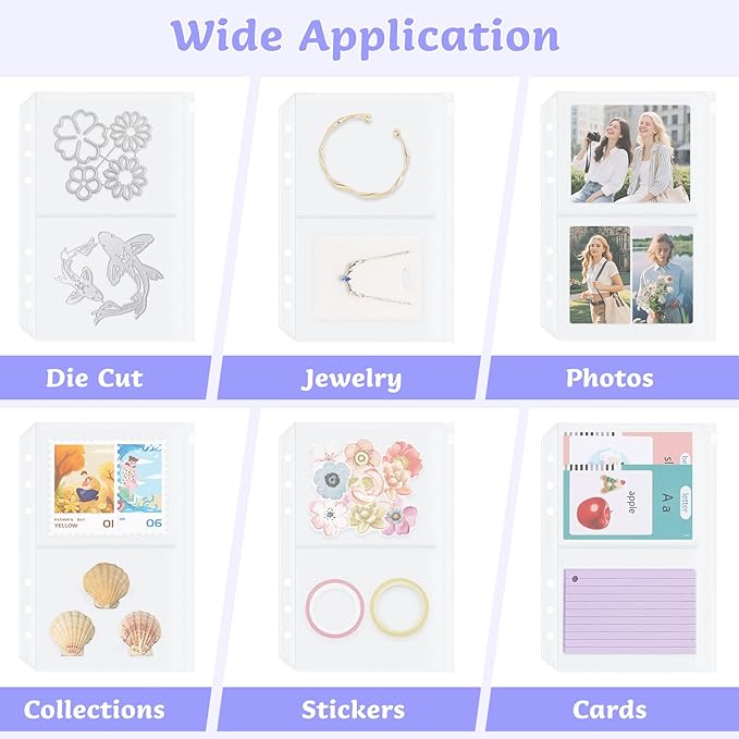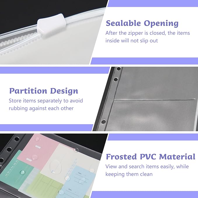 - Frosted PVC Material: These A5 binder zipper pouches are made of translucent PVC material, so you can see the items stored in the pocket pages directly, making it convenient to display and quickly find the items you need